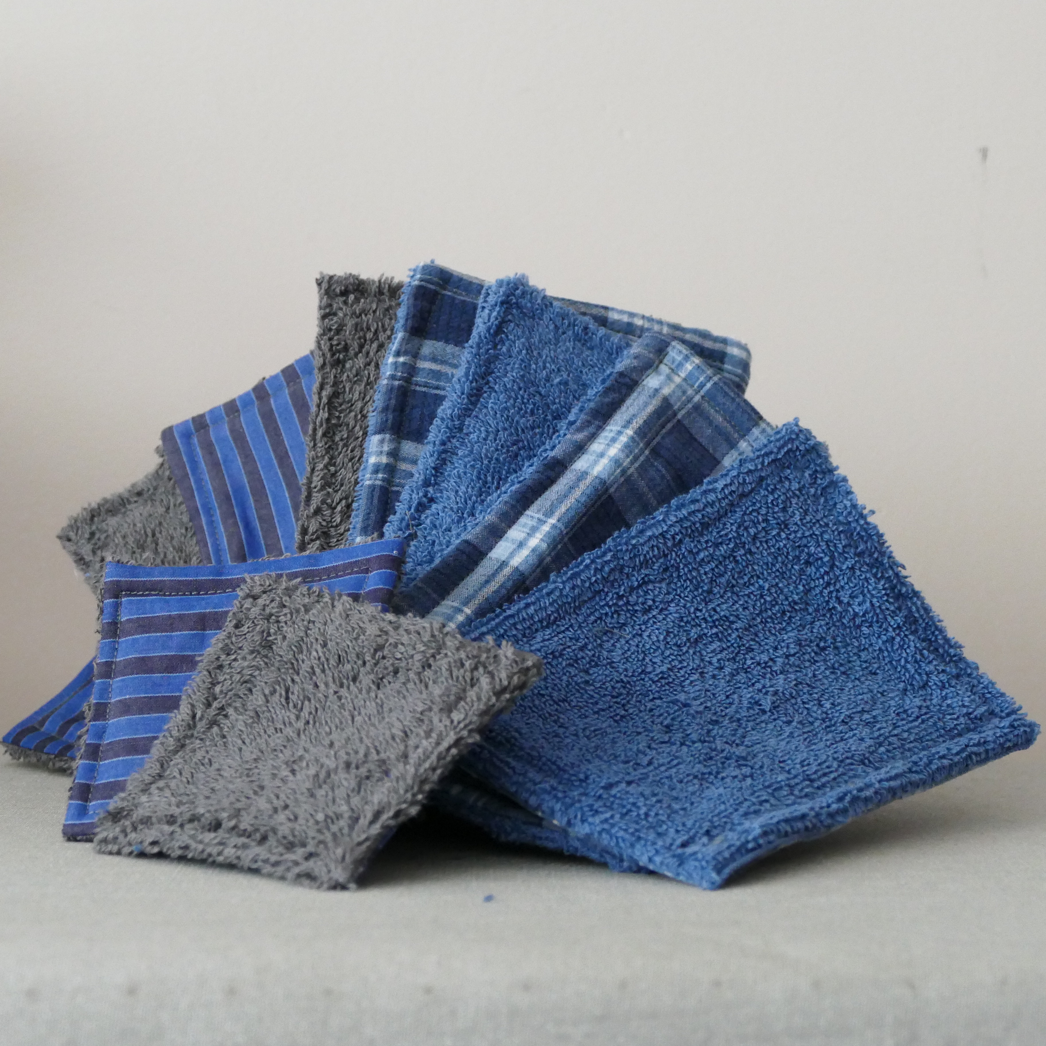 Tissus éponge bleu : récup, tissus éponge gris : Marché saint-Pierre